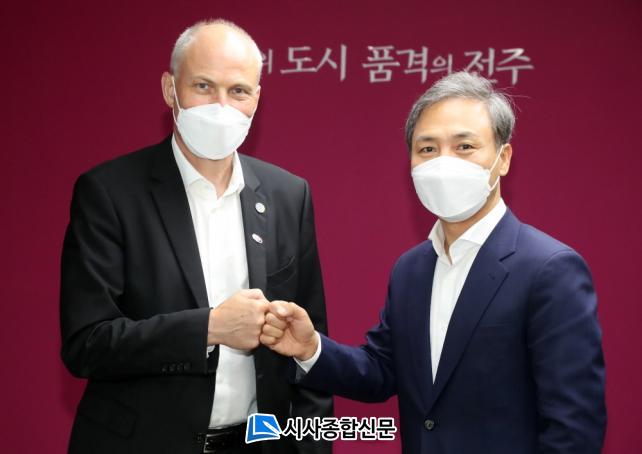 ÇÑÆí, ±è½Â¼ö ÀüÁÖ½ÃÀåÀº ¡°µ§¸¶Å©´Â ź¼ÒÁ߸³ ¹× ±âÈĺ¯È µîÀÇ Á¤Ã¥¿¡ ÀÖ¾î °¡Àå ¼±µµÀûÀÎ ±¹°¡·Î, ±×¸°´ºµôÀÇ ¹Ø±×¸²À» ±×¸®°í ÀÖ´Â ÀüÁÖ½Ã¿Í ±³·ùÇÒ Á¡ÀÌ ¸Å¿ì ¸¹´Ù¡±¸é¼ ¡°2050 ź¼Ò Á߸³À» ¼±µµÀûÀ¸·Î ÃßÁøÇϰí, ¹ÙÀÌ¿À»ê¾÷ÀÇ ¼ºÀå±â¹ÝÀ» °ÈÇÏ´Â µî Áö¼Ó°¡´ÉÇÑ »ýŵµ½ÃÀÇ Çõ½ÅÀûÀÎ »ç·Ê¸¦ ÅëÇØ °¡Àå ¼¼°èÀûÀÎ µµ½Ã·Î µµ¾àÇÒ °Í¡±À̶ó°í ¸»Çß´Ù.