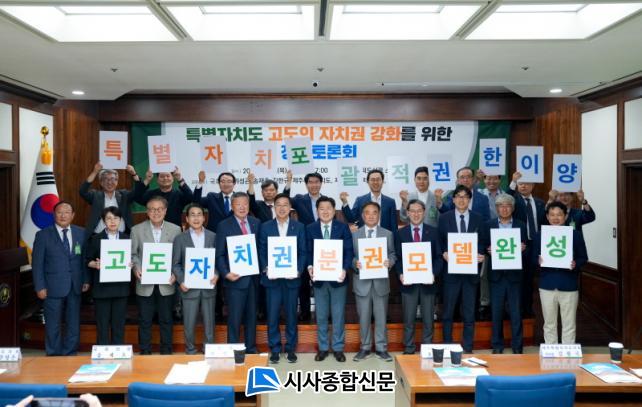 Á¦ÁÖµµ¿Í Á¦ÁÖµµÀÇȸ, Á¦ÁÖÁö¿ª ±¹È¸ÀÇ¿ø, ©ÅÇѱ¹Áö¹æÀÚÄ¡¹ýÇÐȸ(ȸÀå ÃÖöȣ)´Â 25ÀÏ ¿ÀÈÄ ±¹È¸µµ¼°ü ¼ÒȸÀǽǿ¡¼ ¡®Æ¯º°ÀÚÄ¡µµ °íµµÀÇ ÀÚÄ¡±Ç °È¸¦ À§ÇÑ Á¤Ã¥Åä·Ðȸ¡¯¸¦ °³ÃÖÇß´Ù.