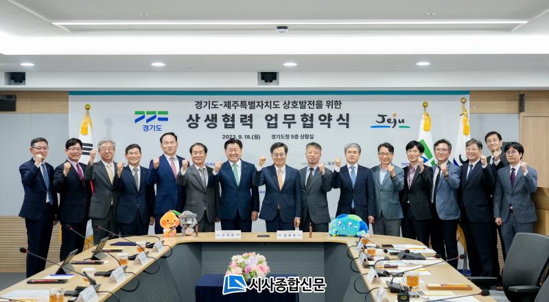Á¦ÁÖµµ¿Í °æ±âµµ´Â 18ÀÏ ¿ÀÈÄ °æ±âµµÃ» »óȲ½Ç¿¡¼ »óÈ£ ½Å·Ú¿Í Çù·ÂÀ¸·Î Áö¼Ó°¡´ÉÇÑ »ó»ý¹ßÀüÀ» ÀÌ·ç±â À§ÇØ ¡®Á¦ÁÖ¡¤°æ±â »ó»ýÇù·Â ¾÷¹«Çù¾à¡¯À» ü°áÇß´Ù.