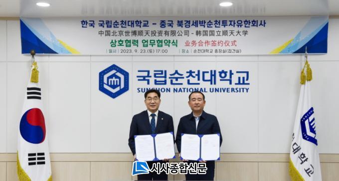 ¼øÃµ´ëÇб³ ÃÑÀå½Ç¿¡¼ 23ÀÏ ¿¸° Çù¾à½Ä¿¡´Â À̺´¿î ÃÑÀå, ±èÀÎ±Ô ¼®Á±³¼ö, ½ÅÁ¤½Å ±¹Á¦±³·ù±³À°º»ºÎÀå, ¹®½ÂÅ ´ë¿ÜÇù·Âº»ºÎÀå°ú Áß±¹ 4°³ ±â¾÷À» ´ëÇ¥ÇÏ¿© ºÏ°æ¼¼¹Ú±×·ì ¹Úö µ¿»çÀå(´ëÇ¥ÀÌ»ç)ÀÌ Âü¼®ÇÏ¿´´Ù.