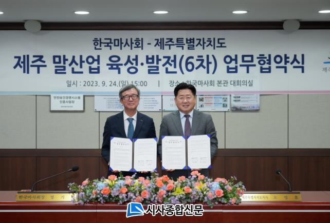 Á¦ÁÖÆ¯º°ÀÚÄ¡µµ¿Í Çѱ¹¸¶»çȸ´Â 24ÀÏ ¿ÀÈÄ 3½Ã °æ±â °úõ½Ã Çѱ¹¸¶»çȸ º»»ç¿¡¼ Á¦ÁÖ ¸»»ê¾÷ À°¼º¡¤¹ßÀüÀ» À§ÇÑ 6Â÷ ¾÷¹«Çù¾àÀ» ü°áÇß´Ù. ¾ç ±â°ü °£ ¸ÎÀº 5Â÷ ¾÷¹«Çù¾à Á¾·á¿¡ µû¶ó Çù¾à ±â°£À» ¿¬ÀåÇÏ´Â ÇÑÆí, Á¤ºÎÀÇ 2Â÷ °ø°ø±â°ü ÀÌÀü ÃßÁø Á¤Ã¥¿¡ ¹ß¸ÂÃá ÈÄ¼Ó Á¶Ä¡ÀÇ ÀÏȯÀ¸·Î À̳¯ ÀÚ¸®°¡ ¸¶·ÃµÆ´Ù.