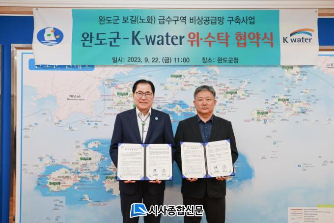 [½Ã»çÁ¾ÇսŹ® = ¿À½ÂÅà ±âÀÚ] ¿Ïµµ±º(±º¼ö ½Å¿ìö)Àº Çѱ¹¼öÀÚ¿ø°ø»ç(K-water) ¿µ¡¤¼¶À¯¿ªº»ºÎ(º»ºÎÀå ¹éÀγë)¿Í Áö³ 9¿ù 22ÀÏ ¡®¿Ïµµ±º º¸±æ¡¤³ëÈ ±Þ¼ö ±¸¿ª ºñ»ó °ø±Þ¸Á ±¸Ãà »ç¾÷¡¯ ½ÃÇàÀ» À§ÇÑ À§¼öŹ Çù¾àÀ» ü°áÇß´Ù.