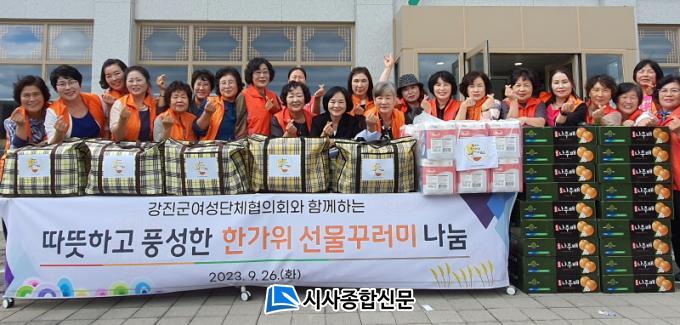 [½Ã»çÁ¾ÇսŹ® = ¿À½ÂÅà ±âÀÚ] °­Áø±º¿©¼º´ÜüÇùÀÇȸ(ȸÀå À̼ø½É)°¡ Ãß¼® ¸íÀýÀ» ¾ÕµÐ Áö³­ 26ÀÏ Ãë¾à°èÃþ 18°¡±¸¿¡ 200¸¸¿ø »ó´çÀÇ ¼±¹°²Ù·¯¹Ì¸¦ Àü´ÞÇØ Áö¿ª»çȸ¿¡ ÈÆÈÆÇÑ °¨µ¿À» Áá´Ù.