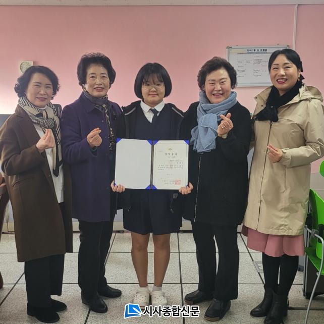 [½Ã»çÁ¾ÇսŹ® = ±è¿¬Èñ ±âÀÚ] (»ç)Çѱ¹¿©¼º¼ÒºñÀÚ¿¬ÇÕ Àå¼öÁöºÎ(ÁöºÎÀå ÀÓ¿µ¶õ)´Â 5ÀÏ ¹éÈ¿©ÀÚ°íµîÇб³ ±³Àå½Ç¿¡¼ 2Çг⠹èÁ¤Àº Çлý¿¡°Ô ÀåÇÐ Áõ¼ Àü´Þ½ÄÀ» °³ÃÖÇß´Ù.