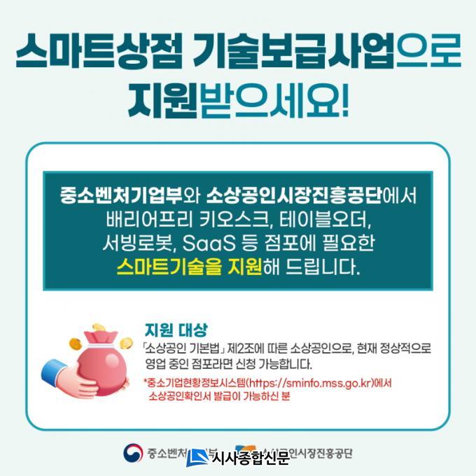 ¼Ò»ó°øÀνÃÀåÁøÈï°ø´Ü¿¡¼ Á¢¼öÇϰí ÀÖ´Â À̹ø ½º¸¶Æ®»óÁ¡ ±â¼úº¸±Þ»ç¾÷Àº Àå¾ÖÀΡ¤°í·ÉÀÚ¡¤ÀÓ»êºÎ µî ¸ðµç »ç¶÷ÀÌ ºÒÆí¾øÀÌ ÀÌ¿ëÇÒ ¼ö Àִ Ű¿À½ºÅ©ÀÎ ¡®¹è¸®¾îÇÁ¸® Ű¿À½ºÅ©¡¯¸¦ Áö¿øÇÏ´Â »ç¾÷À¸·Î ȨÆäÀÌÁö(www.sbiz.or.kr/smst/index.do)¸¦ ÅëÇÑ ¿Â¶óÀÎ Á¢¼ö¸¸ °¡´ÉÇÏ´Ù. ½Åû±â°£Àº 21ÀϱîÁö´Ù.