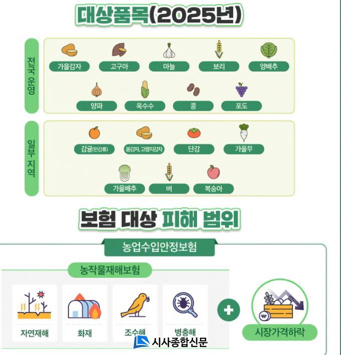 ³ó¾÷¼öÀÔ¾ÈÁ¤º¸ÇèÀº ±âÁ¸ ³óÀÛ¹°ÀçÇØº¸Çè º¸Àå ¹üÀ§ÀÎ ÀÚ¿¬ÀçÇØ, ÈÀç, º´ÃæÇØ µî ÇÇÇØ¿¡ ´õÇØ ½ÃÀå°¡°Ý Ç϶ô¿¡ µû¸¥ ³ó°¡ÀÇ °æÁ¦Àû ¼Õ½ÇÀ» º¸»óÇÏ´Â Á¦µµ´Ù.