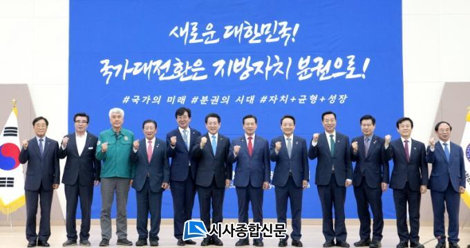 ȸÀÇ¿¡ Âü¼®ÇÑ Á¶À籸 ´ë±¸ ³²±¸Ã»Àå(´ëǥȸÀå)À» ºñ·ÔÇÑ 12¸íÀÇ Áö¹æÀÚÄ¡´ÜüÀåÀº Á¦21´ë ´ëÅë·É¼±°Å¸¦ ¾ÕµÎ°í ¸ðµç Á¤´ç°ú ´ë¼± Èĺ¸µé¿¡°Ô Áö¹æºÐ±Ç°ú ±¹°¡ ±ÕÇü¹ßÀüÀÇ ºñÀüÀ» Á¦½ÃÇÒ °ÍÀ» Ã˱¸ÇÏ´Â °ÇÀǹ®À» ÇÔ²² ³¶µ¶Çß´Ù.