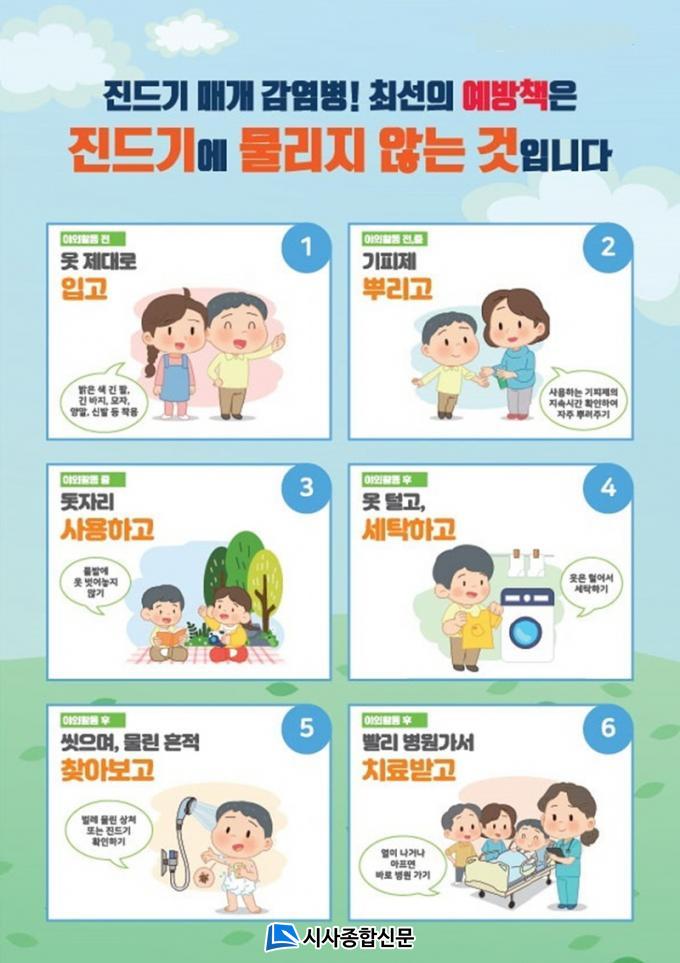 ¿¹¹æ¼öÄ¢À¸·Î´Â ¡ãÇǺθ¦ ³ëÃâÇÏÁö ¾Ê´Â ÀÛ¾÷º¹ ÀԱ⠡ãÁøµå±â ±âÇÇÁ¦ »ç¿ëÇϱ⠡ãÇ®¹ç¡¤Ç®½£Àº ÇÇÇϱ⠡ã±Í°¡ ÈÄ, ¾Ä°í »¡·¡Çϱ⠵îÀÌ´Ù. ¾Õ¼ ½Ã´Â ÀÌ¿Í °ü·ÃÇØ Áøµå±â ¿¹¹æÀ» À§ÇÑ ÆÈÅä½Ã 6,500°³¿Í ±âÇÇÁ¦ 8,000°³¸¦ ½Ã¹Îµé¿¡°Ô º¸±ÞÇÑ ¹Ù ÀÖ´Ù.