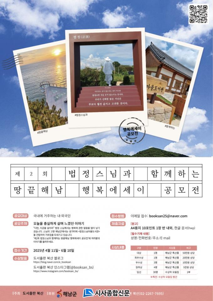 ÀÚ¼¼ÇÑ »çÇ×Àº µµ¼ÃâÆÇ ºÏ»ê ºí·Î±×(https://blog.naver.com/e_booksan)¿Í ÇØ³²±º ¼ÒÅë³ÝÀ» Âü°íÇÏ¸é µÈ´Ù. À̹ø °ø¸ðÀüÀº ¹ýÁ¤ ½º´ÔÀÇ »î°ú °¡¸£Ä§À» ±â¾ïÇÏ°í ±â¸®±â À§ÇØ Á¶¼ºµÈ¡®¹ýÁ¤½º´Ô ¸¶À» µµ¼°ü°ú ¿¬°èÇØ ±âȹµÆ´Ù.