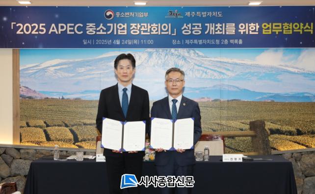 ÇÑÆí, Á¦ÁÖµµ´Â À̳¯ ¿ÀÀü Áø¸í±â ÇàÁ¤ºÎÁö»ç¿Í ³ë¿ë¼® Áß¼Òº¥Ã³±â¾÷ºÎ Áß¼Ò±â¾÷Á¤Ã¥½ÇÀåÀÌ Âü¼®ÇÑ °¡¿îµ¥, ¿À´Â 9¿ù ¿­¸®´Â 2025 APEC Áß¼Ò±â¾÷Àå°üȸÀÇ Áغñ¡¤¿î¿µÀ» À§ÇÑ ¾÷¹«Çù¾àÀ» ü°áÇß´Ù.