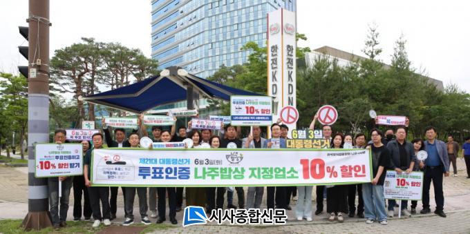 À±º´Å ³ªÁÖ½ÃÀå°ú Çѱ¹¿Ü½Ä¾÷Áß¾Óȸ ³ªÁÖ½ÃÁöºÎ, ºû°¡¶÷Çõ½Åµµ½Ã »ó°¡¹ø¿µÈ¸ ȸ¿ø 60¿©¸íÀº 23ÀÏ ¿ÀÀü¿¡ ÇÑÀüKDN »ç°Å¸®¿¡¼ À¯±ÇÀÚÀÇ ¼ÒÁßÇÑ ÇÑ Ç¥ Çà»ç¸¦ µ¶·ÁÇÏ´Â °Å¸®È«º¸ Ä·ÆäÀÎÀ» ÁøÇàÇß´Ù.