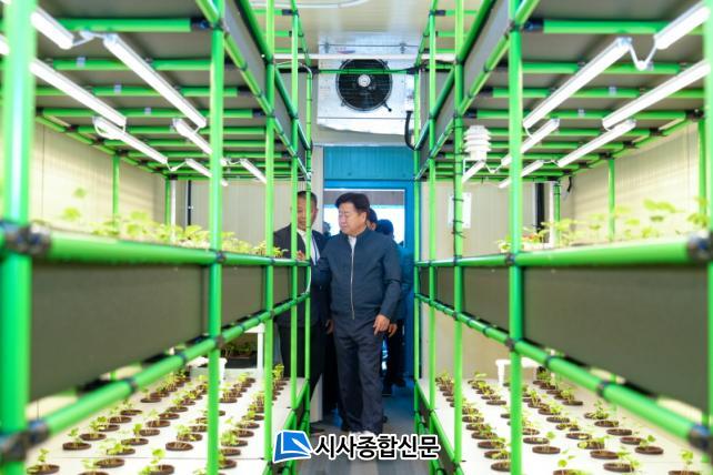 ¿À¿µÈÆ Áö»ç´Â ¡°ÄÁÅ×ÀÌ³Ê ½Ä¹°°øÀåÀ» º¸¸é¼ °úÇаú ÀΰøÁö´É(AI), µðÁöÅÐ ºÐ¾ßÀÇ ±â¼úÀÌ µÞ¹ÞħµÇÁö ¾ÊÀ¸¸é °íºÎ°¡°¡Ä¡ ³ó¾÷À¸·Î ¹ßÀüÇÒ ¼ö ¾ø´Ù´Â Á¡À» ´Ù½Ã Çѹø È®ÀÎÇß´Ù¡±¸ç ¡°ÇªµåÅ×Å©¿Í ½Ä¹°°øÀå µî ½º¸¶Æ®³ó¾÷ÀÌ Á¦ÁÖ ³ó¾÷ Àü¹ÝÀ¸·Î È®»êµÉ ¼ö ÀÖµµ·Ï ÃÖ¼±À» ´ÙÇϰڴ١±°í °Á¶Çß´Ù.