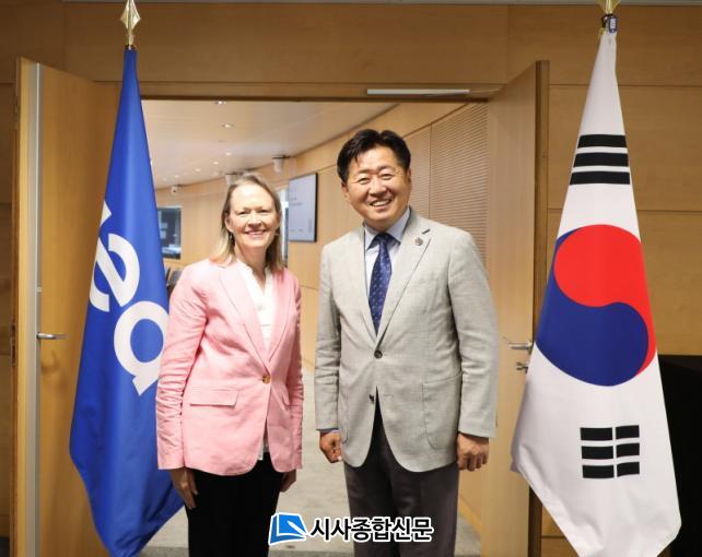 ¿À¿µÈÆ Áö»ç¸¦ ´ÜÀåÀ¸·Î ÇÑ Á¦ÁÖµµ ¹æ¹®´ÜÀº 23ÀÏ(ÇöÁö½Ã°£) ÇÁ¶û½º ÆÄ¸® ±¹Á¦¿¡³ÊÁö±â±¸(IEA)¿¡¼ ¸Þ¸® ºê·ç½º ¿ö¸¯(Mary Bruce Warlick) ºÎ»ç¹«ÃÑÀå°ú ¸¸³ª Á¦ÁÖÀÇ ¿¡³ÊÁö Á¤Ã¥À» ¼Ò°³ÇÏ°í ¾ç ±â°ü °£ ±¸Ã¼ÀûÀÎ Çù·Â¹æ¾ÈÀ» ³íÀÇÇß´Ù.