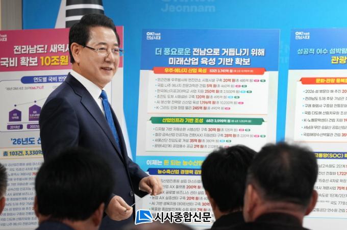 [½Ã»çÁ¾ÇսŹ® = ¿À½ÂÅà ±âÀÚ] Àü¶ó³²µµ´Â Áö³­ 2ÀÏ ±¹È¸¿¡¼­ È®Á¤µÈ 2026³â Á¤ºÎ¿¹»ê¿¡ ¿ª´ë ÃÖ´ëÀÎ ±¹ºñ 10Á¶ 42¾ï ¿øÀ» È®º¸ÇØ »ç»ó ù ±¹ºñ 10Á¶ ¿ø ½Ã´ë¸¦ ¿­¾î, ¹Ì·¡ Àü³² Ȳ±Ý½Ã´ëÀÇ µçµçÇÑ Åä´ë¸¦ ¸¶·ÃÇß´Ù°í ¹àÇû´Ù.