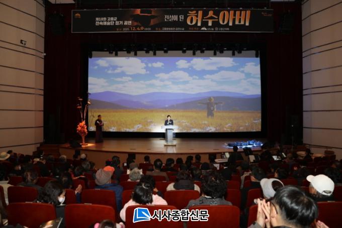 ¡®Àü¼³ÀÌ µÈ Çã¼ö¾Æºñ¡¯´Â °íÈﱺ Àü¼Ó¿¹¼ú´ÜÀÌ ÀÚü ±âȹÇÑ Ã¢ÀÛ °ø¿¬À¸·Î, ¿¹Àε¿ ÃѰý°¨µ¶ÀÌ ±âȹÀ» ¸Ã°í, ½ÉÇöÁ¤ ¹«¿ë´Ü ÁöµµÀÚ°¡ ¾È¹«¸¦ Á¦ÀÛÇßÀ¸¸ç, °íÈﱺ Àü¼Ó¿¹¼ú´Ü¿ø 17¸í°ú °íÈﱺ¹Î 12¸í, ¹Ú¹Ì° µî 6¸íÀÇ ¿¬ÁÖÀÚ¿Í ±èº¸¶÷ ÀÛ°î°¡ µîÀÌ ÇÔ²²ÇØ ¿Ï¼ºµµ ³ôÀº ¹«´ë¸¦ ¼±º¸¿´´Ù.