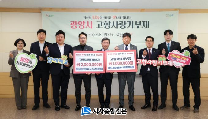 ±¤¾ç½Ãû³â¿¬ÇÕȸ´Â ÀڸŰῬ û³â´Üüµé°ú °íÇâ»ç¶û »óÈ£±âºÎÀÇ ÃëÁö¸¦ °øÀ¯ÇÏ¸ç »óÈ£±âºÎ¸¦ ÃßÁøÇßÀ¸¸ç, Æ÷Ç×ÇâÅäû³âȸ¿Í 100¸¸ ¿ø, ¼øÃµ½Ãû³â¿¬ÇÕȸ¿Í 200¸¸ ¿øÀ» »óÈ£ ±âºÎÇØ ÃÑ 300¸¸ ¿øÀ» ±âŹÇß´Ù.