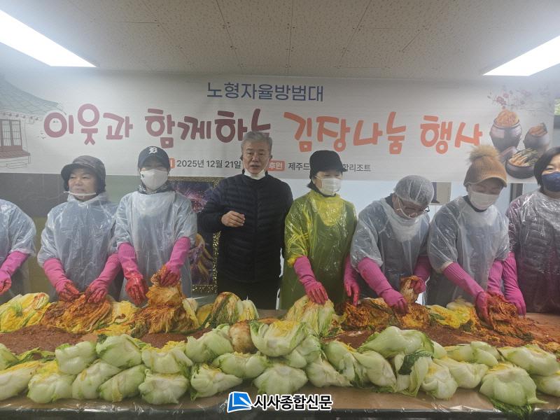 [½Ã»çÁ¾ÇսŹ® = °í¼º¹Î ±âÀÚ] Á¦ÁÖ¼ºÎ°æÂû¼ ³ëÇüÁö±¸´ëÀÚÀ²¹æ¹ü´ë(´ëÀå ¾ç°æÅÃ)¿¡¼´Â Áö³ 21ÀÏ ÀÚÀ²¹æ¹ü´ë¿ø 50¿©¸íÀÌ Âü¼®ÇÑ °¡¿îµ¥ ³ëÇüµ¿ °ü³» Á¤µç¸¶À» ³ª´® ³ÃÀå°í ¹× ¼Ø»È »ì·¹ ³ª´® ³ÃÀå°í¸¦ ÅëÇÏ¿© ¾î·Á¿î ÀÌ¿ô¿¡°Ô ±èÀå±èÄ¡¸¦ Àü´ÞÇϱâ À§ÇØ ±èÀå ´ã±×±â Çà»ç¸¦ °¡Á³´Ù.