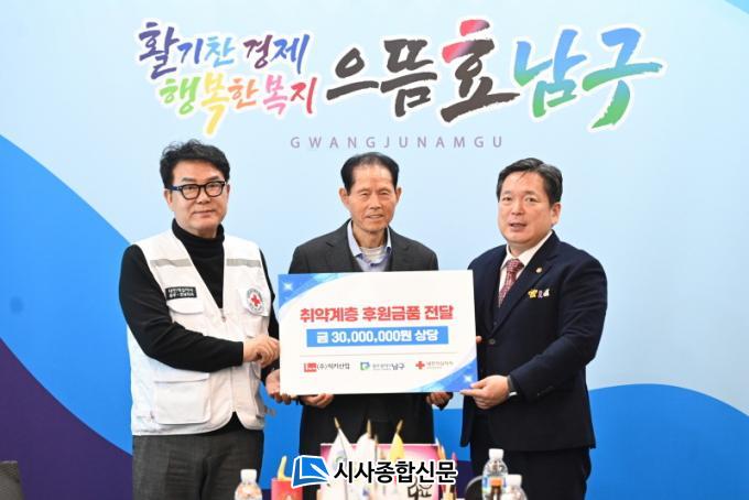 [½Ã»çÁ¾ÇսŹ® = ¿À½ÂÅà ±âÀÚ] ¢ß·°Å°»ê¾÷ ¹ÚÈï¼® ȸÀåÀº ´ëÇÑÀû½ÊÀÚ»ç ±¤ÁÖÀü³²Áö»ç¿Í ¿¬°èÇÏ¿© 30ÀÏ ±¤Áֽà ³²±¸Ã»À» ¹æ¹®, °ü³» Ãë¾à°èÃþ Áö¿øÀ» À§ÇÑ ±âºÎ±Ý ¹× »ýÇÊǰ¼¼Æ® µî ÃÑ 3,000¸¸¿ø »ó´çÀ» ³²±¸¿¡ Àü´ÞÇß´Ù.