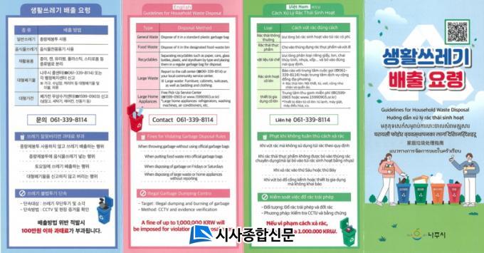 ³ªÁÖ½Ã(½ÃÀå À±º´ÅÂ)´Â ¾ð¾îÀ庮À¸·Î »ýȰÆó±â¹° ¹èÃâ¿¡ ¾î·Á¿òÀ» °Þ´Â ¿Ü±¹ÀÎÀ» ´ë»óÀ¸·Î ÀûÁ¤ ¹èÃâ ¹æ¹ýÀ» ¾È³»Çϱâ À§ÇØ Á¢ÀÌ½Ä ¸®Çø´ ÇüÅÂÀÇ ´Ù±¹¾î È«º¸¹°À» Á¦ÀÛÇß´Ù°í 2ÀÏ ¹àÇû´Ù.