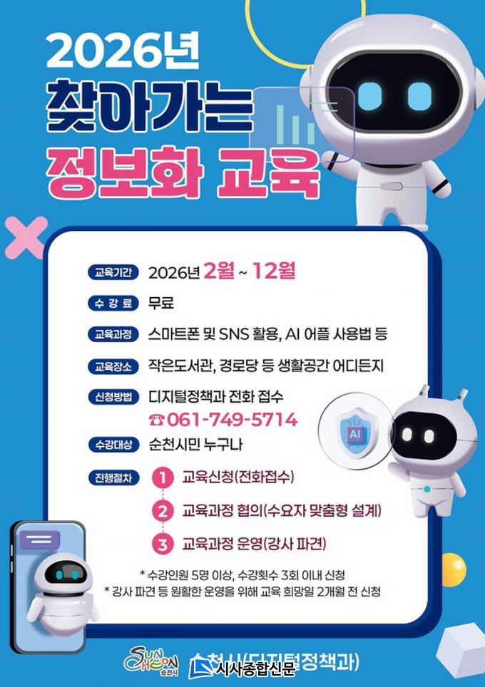 ÁýÇÕ ±³À°Àº ½Ãû Àü»ê ±³À°Àå¿¡¼ ¿ùº° ÀÏÁ¤¿¡ µû¶ó ¿î¿µµÈ´Ù. ƯÈ÷, ¿ÃÇØ´Â AI °úÁ¤ÀÌ »õ·Ó°Ô Ãß°¡µÇ¾î Ãֽбâ¼úÀ» ½±°í ÆíÇÏ°Ô ¹è¿ï ¼ö ÀÖµµ·Ï ÇÁ·Î±×·¥À» °ÈÇß´Ù. ±³À° ½ÅûÀº ¸Å¿ù ¸¶Áö¸· ÁÖ ¿ù¿äÀÏ ÀüÈ(061-749-5714) ¶Ç´Â ±× ÀüÁÖ ¿ù¿äÀϺÎÅÍ ½Ã ȨÆäÀÌÁö ¡®¹Ù·Î¿¹¾à¡¯À» ÅëÇØ ½ÅûÇÏ¸é µÈ´Ù.