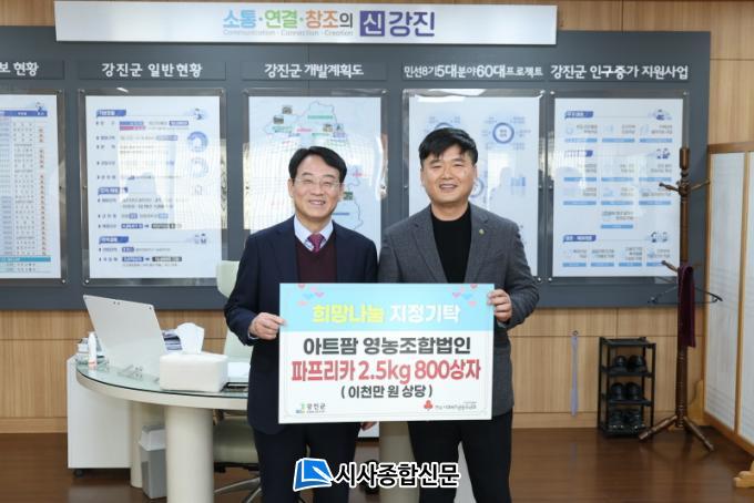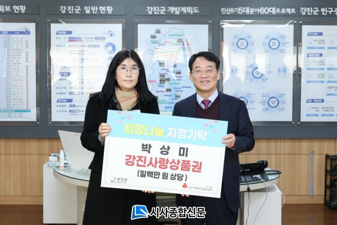 ¹Ú»ó¹Ì ¾¾´Â Áö³ÇØ ¿¬¸» °Áø·ÎŸ¸® Çà»ç¿¡¼ ¹ÞÀº °æÇ°ÀÎ °Áø»ç¶û»óǰ±Ç 100¸¸ ¿ø Àü¾×À» ±âŹÇϸç Áö¿ªÀ» À§ÇÑ Ã¹ ¸¶À½À» ½ÇõÇß´Ù. µþ±â¼öÃ⿬±¸È¸´Â Çö±Ý 100¸¸ ¿ø°ú ÇÔ²² µþ±â 1.32kg 50»óÀÚ¸¦, ¾ÆÆ®ÆÊ¿µ³óÁ¶ÇÕ¹ýÀÎÀº ÆÄÇÁ¸®Ä« 2.5kg 800»óÀÚ¸¦ ±âºÎÇϸç Áö¿ª ³ó»ê¹° ³ª´®À» ½ÇõÇß´Ù. ±èâ³² ±ÝµÎ²¨ºñ ´ëÇ¥´Â 700ÀκРºÐ·®ÀÇ »ç°ñ±¹À» Àü´ÞÇØ Àú¼Òµæ ÁֹΠ°Ü¿ïö ½Ä»ýȰ Áö¿ø¿¡ ÈûÀ» º¸ÅÉ´Ù.