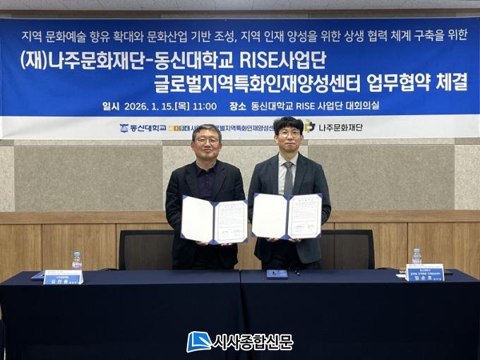 ³ªÁÖ¹®ÈÀç´Ü(ÀÌ»çÀå À±º´ÅÂ)Àº µ¿½Å´ëÇб³ RISE»ç¾÷´Ü ±Û·Î¹úÁö¿ªÆ¯ÈÀÎÀç¾ç¼º¼¾ÅÍ(¼¾ÅÍÀå ÀÓ¼øÈ£)¿Í Áö³ 15ÀÏ Áö¿ª ¹®È¿¹¼ú ÇâÀ¯ È®´ë¿Í ¹®È»ê¾÷ ±â¹Ý Á¶¼º, û³â ÀÎÀç ¾ç¼ºÀ» À§ÇÑ ¾÷¹«Çù¾àÀ» ü°áÇß´Ù°í 16ÀÏ ¹àÇû´Ù.