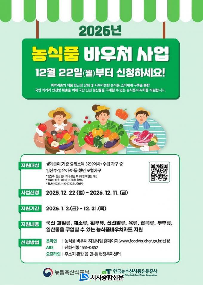 2026³â ³ó½Äǰ ¹Ù¿ìó´Â »ý°è±Þ¿©(±âÁØ ÁßÀ§¼Òµæ 32% ÀÌÇÏ) ¼ö±Þ°¡±¸ Áß ÀÓ»êºÎ¡¤¿µÀ¯¾Æ¡¤¾Æµ¿¿¡ ´õÇØ ¡®Ã»³â¡¯±îÁö Æ÷ÇÔÇÏ¿© Áö¿ø ´ë»óÀ» È®´ëÇß´Ù. û³âÀº 1992³â»ý±îÁö Áö¿ø´ë»ó¿¡ Æ÷ÇԵȴÙ.