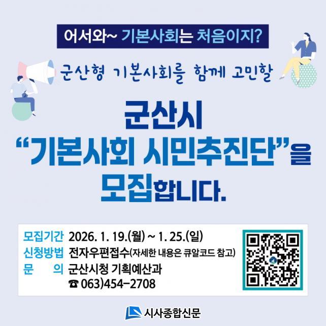 ¸ðÁý ±â°£Àº ¿À´Â 25ÀϱîÁö·Î À̸ÞÀÏ(seh7048@korea.kr)·Î Á¢¼öÇÏ¸é µÈ´Ù. ÀÚ¼¼ÇÑ »çÇ×Àº ±º»ê½Ãû ±âȹ¿¹»ê°ú(¢Ï063-454-2708)·Î ¹®ÀÇÇϰųª, ±º»ê½Ãû ´©¸®Áý °í½Ã°ø°í¸¦ ÅëÇØ È®ÀÎÇÒ ¼ö ÀÖ´Ù.