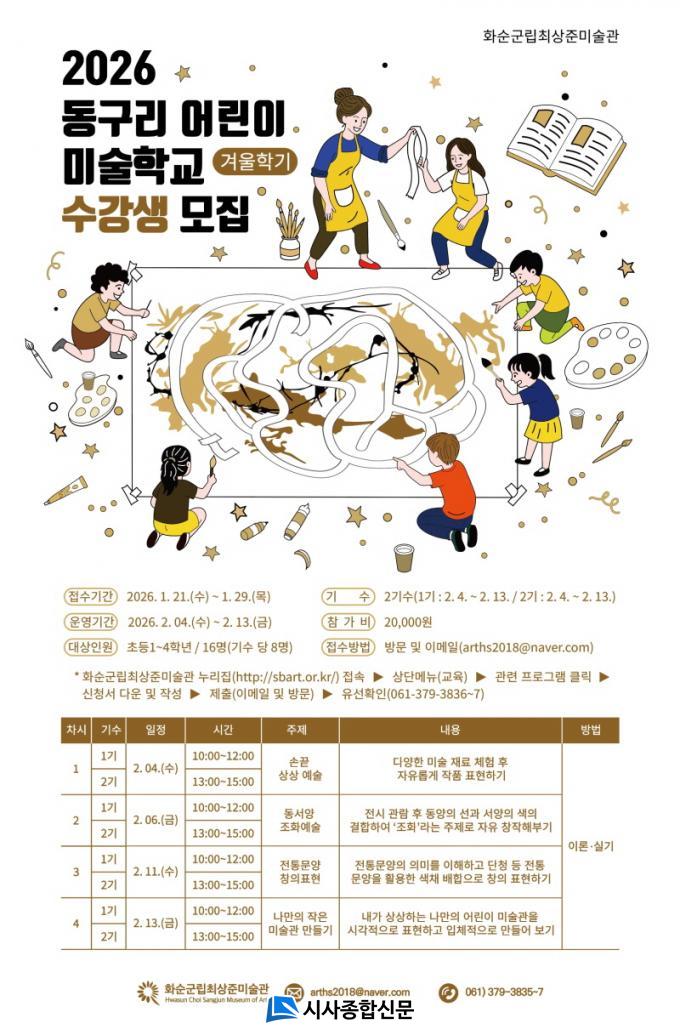 ¡®µ¿±¸¸® ¾î¸°ÀÌ ¹Ì¼úÇб³¡¯ °Ü¿ïÇбâ´Â 2¿ù 4ÀÏ(¼ö)ºÎÅÍ 2¿ù 13ÀÏ(±Ý)±îÁö ÁÖ 2ȸ(¼ö¡¤±Ý) ¿ÀÀü¹Ý°ú ¿ÀÈĹÝÀ¸·Î ³ª´©¾î ÁøÇàµÈ´Ù. ÃÑ 4Â÷½Ã °úÁ¤À¸·Î ±â¼öº° ¸ðÁý ÀοøÀº 8¸í ¼Ò±Ô¸ð·Î ¿î¿µµÅ º¸´Ù ÁýÁßÀûÀ̰í ü°èÀûÀÎ ¹Ì¼ú±³À°ÀÌ ÀÌ·ç¾îÁú ¿¹Á¤ÀÌ´Ù. ¼ö°·á´Â 2¸¸ ¿øÀÌ´Ù.