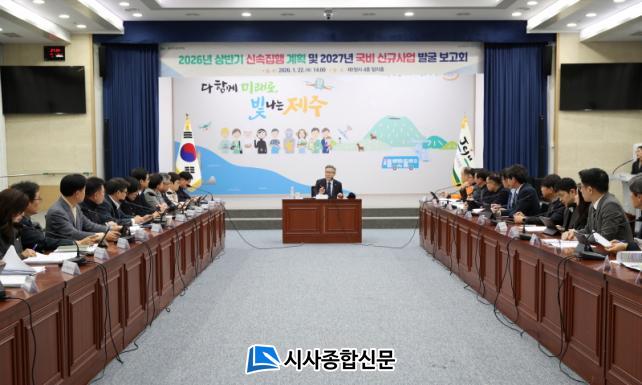 Á¦ÁÖµµ´Â 4¿ù ¸» Áß¾ÓºÎó ¿¹»ê ½Åû ½Ã±â±îÁö ½Å±Ô»ç¾÷ ¹ß±¼À» À̾°í, Á¦ÁÖÀÇ Áö¿ªÀû Ư¼ö¼º°ú »ç¾÷ Çʿ伺À» ü°èÀûÀ¸·Î ÀÔÁõÇØ Áß¾ÓºÎó¿Í ±¹È¸ ÀýÃæ¿¡ ÃÑ·ÂÀ» ±â¿ïÀδٴ °èȹÀÌ´Ù. ÀÌ·¯ÇÑ °èȹÀ» ³íÀÇÇϱâ À§ÇØ Á¦ÁÖµµ´Â 22ÀÏ ¿ÀÈÄ 2½Ã µµÃ» ޶óȦ¿¡¼ Áø¸í±â ÇàÁ¤ºÎÁö»ç ÁÖÀç·Î ¡®2026³â »ó¹Ý±â ½Å¼ÓÁýÇà ÃßÁø °èȹ ¹× 2027³â ±¹ºñ ½Å±Ô»ç¾÷ ¹ß±¼ º¸°íȸ'¸¦ °³ÃÖÇÑ´Ù.