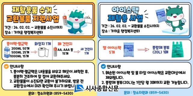 26ÀÏ ÀÍ»ê½Ã¿¡ µû¸£¸é ÀçȰ¿ëǰ ¼ö°Å ±³È¯¹°Ç° Áö¿ø»ç¾÷Àº 2¿ù 2ÀϺÎÅÍ ¿î¿µÀ» ½ÃÀÛÇϸç, ½Ã¹Î ´©±¸³ª °¡±î¿î À¾¡¤¸é¡¤µ¿ ÇàÁ¤º¹Áö¼¾Å͸¦ ¹æ¹®ÇØ Âü¿©ÇÒ ¼ö ÀÖ´Ù.