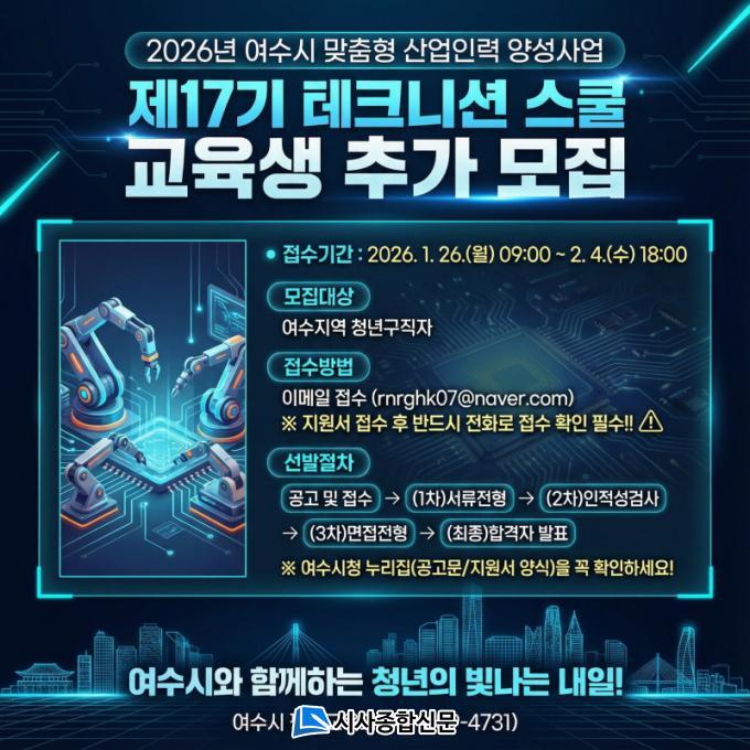 À̹ø Ãß°¡ ¸ðÁýÀÇ Á¢¼ö ±â°£Àº 1¿ù 26ÀÏ ¿ÀÀü 9½ÃºÎÅÍ 2¿ù 4ÀÏ ¿ÀÈÄ 6½Ã±îÁöÀ̸ç, ¸ðÁý ´ë»óÀº ¿©¼ö Áö¿ª û³â ±¸Á÷ÀÚÀÌ´Ù.
