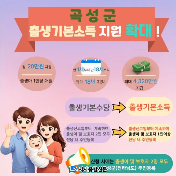 Ãâ»ý±âº»¼ÒµæÀº Ãâ»ê °¡Á¤ÀÇ °æÁ¦Àû ºÎ´ãÀ» ÁÙÀ̱â À§ÇÑ Á¦µµ·Î, 2024³â ÀÌÈÄ Ãâ»ýÇÑ ¾Æµ¿À» ´ë»óÀ¸·Î ¸¸ 1¼¼ºÎÅÍ ¸¸ 18¼¼±îÁö ¸Å¿ù 20¸¸ ¿øÀ» Çö±ÝÀ¸·Î Áö¿øÇÏ´Â Á¤Ã¥ÀÌ´Ù. À̸¦ ÅëÇØ ¾ÆÀÌ 1Àδç ÃÖ´ë 4,320¸¸ ¿øÀÇ Áö¿øÀ» ¹ÞÀ» ¼ö ÀÖ´Ù.