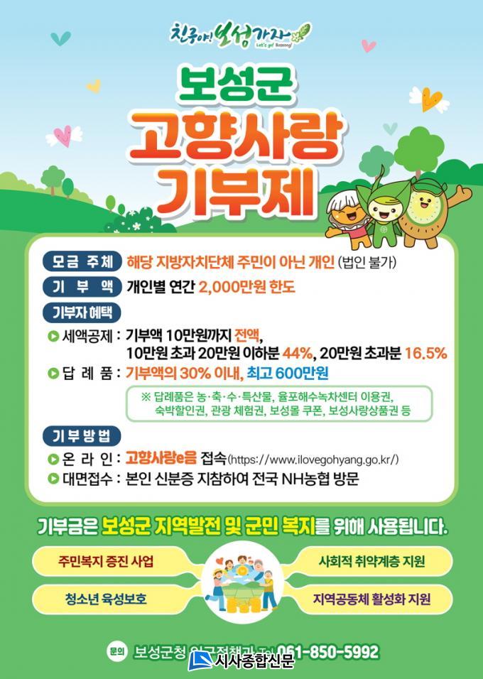 ¡®°íÇâ»ç¶û±âºÎÁ¦¡¯´Â °³ÀÎÀÌ ÁÖ¼ÒÁö ¿Ü ÁöÀÚü¿¡ ¿¬°£ ÃÖ´ë 2,000¸¸ ¿ø±îÁö ±âºÎÇÒ ¼ö ÀÖ´Â Á¦µµ·Î, ±âºÎÀÚ´Â ¼¼¾×°øÁ¦ ÇýÅðú ÇÔ²² Áö¿ª Ư»ê¹° µî ´ä·ÊǰÀ» ¹ÞÀ» ¼ö ÀÖ´Ù. ±âºÎ±ÝÀº Áö¿ªÀÇ º¹Áö ÁõÁø°ú ÁֹΠ»îÀÇ Áú Çâ»óÀ» À§ÇÑ ´Ù¾çÇÑ »ç¾÷¿¡ Ȱ¿ëµÈ´Ù.