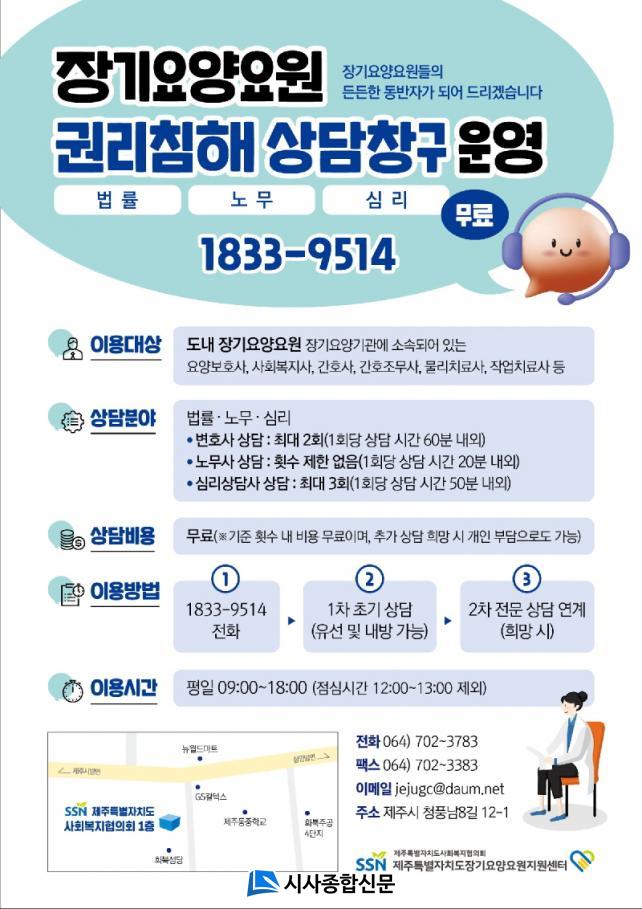 Á¦ÁÖµµ´Â À̵éÀÌ ÇöÀå¿¡¼ °Þ´Â °íÃæÀ» ½Å¼ÓÇÏ°Ô »ó´ãÇϰí Áö¿øÇϱâ À§ÇØ Àå±â¿ä¾ç¿ä¿øÁö¿ø¼¾Å͸¦ ÅëÇØ Àü¿ë »ó´ã ⱸ ¡®½Ã½ÃÄÝÄÝ¡¯À» µµ ´ÜÀ§ ÃÖÃÊ·Î ¸¶·ÃÇß´Ù. »ó´ã ´ë»óÀº µµ³» Àå±â¿ä¾ç±â°ü¿¡¼ ±Ù¹«ÇÏ´Â ¿ä¾çº¸È£»ç, »çȸº¹Áö»ç, °£È£»ç, °£È£Á¶¹«»ç, ¹°¸®Ä¡·á»ç, ÀÛ¾÷Ä¡·á»ç µîÀÌ´Ù.
