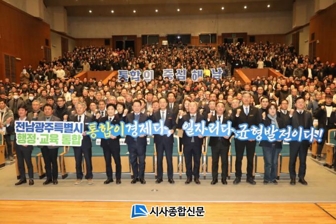 ÇÑÆí 29ÀÏ ÇØ³²¹®È¿¹¼úȸ°ü¿¡¼´Â Àü³²¡¤±¤ÁÖ ÇàÁ¤ÅëÇÕ µµ¹Î °øÃ»È¸°¡ ¿·È´Ù. 700¿©¸íÀÇ ±º¹ÎµéÀÌ °¡µæÂù °¡¿îµ¥ ¿¸° °øÃ»È¸¿¡¼´Â ±è¿µ·Ï Àü³²µµÁö»ç¿Í ±è´ëÁß Àü³²±³À°°¨ÀÌ ÇàÁ¤¡¤±³À° ÅëÇÕÀÇ ÃßÁø °æ°ú¿Í ÀǹÌ, ÇâÈÄ ¹ßÀü¹æÇâ¿¡ ´ëÇØ ÇØ³²±º¹Îµé¿¡°Ô ¼³¸íÇÏ´Â ÀÚ¸®¸¦ °¡Á³´Ù.