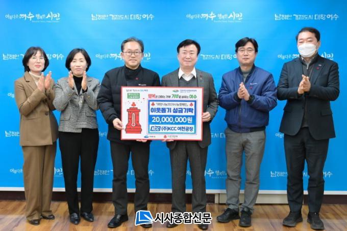 [½Ã»çÁ¾ÇսŹ® = ¿À½ÂÅà ±âÀÚ] ¿©¼ö½Ã´Â Áö³ 1¿ù 29ÀÏ, (ÁÖ)KCC ¿©Ãµ°øÀå(°øÀåÀå ÇÑ»ó¸¸)ÀÌ Áö¿ª »çȸÀÇ ¾î·Á¿î ÀÌ¿ôÀ» µ½±â À§ÇØ ¡¸Èñ¸Á2026³ª´®Ä·ÆäÀΡ¹¿¡ Âü¿©ÇØ ¼º±Ý 2õ¸¸ ¿øÀ» ±âŹÇß´Ù°í ¹àÇû´Ù.