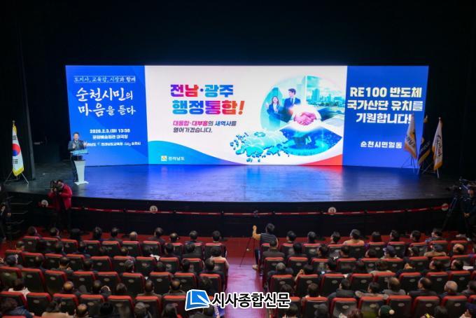 ³ë°ü±Ô ¼øÃµ½ÃÀåÀº ¡°Àü³²¡¤±¤ÁÖ ÇàÁ¤ÅëÇÕÀº Àü³²µµÃ» ÀÌÀü¿¡ ¹ö±Ý°¡´Â Áß´ëÇÑ º¯È·Î, ¸íºÐº¸´Ù ½ÇÀÍÀ» ±âÁØÀ¸·Î Á¢±ÙÇØ¾ß ÇÑ´Ù¡±¸ç, ¡°µ¿ºÎ±ÇÀÇ ¿¡³ÊÁö¡¤»ê¾÷ ±â¹ÝÀ» »ì¸° RE100 ¹ÝµµÃ¼ ±¹°¡»ê´ÜÀ» ÅëÇØ »ê¾÷±¸Á¶¸¦ ÀçÆíÇϰí, ¿¹»ê°ú »ê¾÷ÀÌ Æ¯Á¤ Áö¿ªÀ¸·Î ½ò¸®Áö ¾Êµµ·Ï Á¦µµÀû º¸¿ÏÀÌ ÇÊ¿äÇÏ´Ù¡±°í °Á¶Çß´Ù.