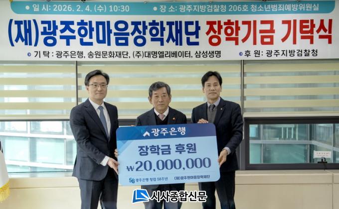 [½Ã»çÁ¾ÇսŹ® = ¿À½ÂÅà ±âÀÚ] ±¤ÁÖÀºÇà(ÀºÇàÀå Á¤Àϼ±)Àº 4ÀÏ, ±¤ÁÖÁö¹æ°ËÂûû¿¡¼ °ÁöÈÆ ±¤ÁÖÀºÇà ¿µ¾÷1º»ºÎ ºÎÇàÀå°ú ±èÁ¾¿ì ±¤ÁÖÁö¹æ°ËÂûû °Ë»çÀå, ÇÑ»ó¿ø ±¤ÁÖÇѸ¶À½ÀåÇÐÀç´Ü ÀÌ»çÀåÀÌ Âü¼®ÇÑ °¡¿îµ¥, (Àç)±¤ÁÖÇѸ¶À½ÀåÇÐÀç´Ü¿¡ ÀåÇÐ±Ý 2õ¸¸ ¿øÀ» Àü´ÞÇß´Ù°í ¹àÇû´Ù.