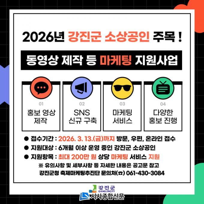 ½ÅûÀº ¿À´Â 3¿ù 13ÀÏ ±îÁö °Áø±ºÃ» ÃàÁ¦¸¶ÄÉÆÃÃßÁø´Ü ¹æ¹® ¶Ç´Â µî±â¿ìÆí Á¢¼ö, °Áø±º ´©¸®Áý ¡®¼Ò»ó°øÀÎÁö¿ø¼¾ÅÍ¡¯¸¦ ÅëÇÑ ¿Â¶óÀÎ Á¢¼öµµ °¡´ÉÇÏ´Ù. ÀÚ¼¼ÇÑ »çÇ×Àº °Áø±º ȨÆäÀÌÁö¸¦ È®ÀÎÇÏ¸é µÈ´Ù.