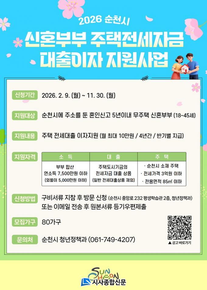 ½ÅÈ¥ºÎºÎ ÁÖÅÃÀü¼¼ÀÚ±Ý ´ëÃâÀÌÀÚ Áö¿ø»ç¾÷Àº ¼øÃµ½Ã¿¡ °ÅÁÖÇÏ´Â ¹«ÁÖÅà ½ÅÈ¥ºÎºÎ¿¡°Ô Àü¼¼ÀÚ±Ý ´ëÃâÀÌÀÚ¸¦ ¿ù 10¸¸ ¿ø¾¿ ÃÖ´ë 4³â°£ Áö¿øÇÏ´Â »ç¾÷ÀÌ´Ù.