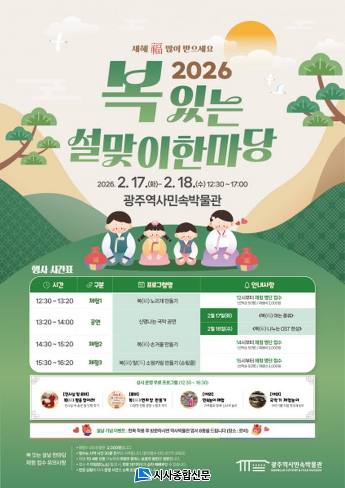 ±¤ÁÖ¿ª»ç¹Î¼Ó¹Ú¹°°ü¿¡¼´Â 17~18ÀÏ ÀÌÆ²°£ Ç»Àü±¹¾Ç °ø¿¬°ú ´Ù¾çÇÑ Ã¼Çè Çà»ç¸¦ ÆîÄ£´Ù.