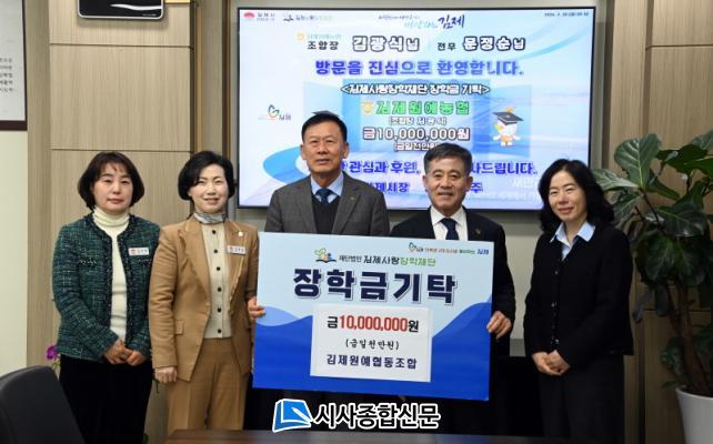 [½Ã»çÁ¾ÇսŹ® = ¿À½ÂÅà ±âÀÚ] ±èÁ¦»ç¶ûÀåÇÐÀç´ÜÀº Áö³­ 20ÀÏ ±èÁ¦¿ø¿¹³ó¾÷Çùµ¿Á¶ÇÕ(Á¶ÇÕÀå ±è±¤½Ä, ÀÌÇÏ ±èÁ¦¿ø¿¹³óÇù)ÀÌ Áö¿ªÀÇ ¹Ì·¡¸¦ Áû¾îÁú ¿ì¼ö ÀÎÀç ¾ç¼ºÀ» À§ÇØ ÀåÇÐ±Ý 1õ¸¸ ¿øÀ» ±âŹÇß´Ù°í ¹àÇû´Ù.