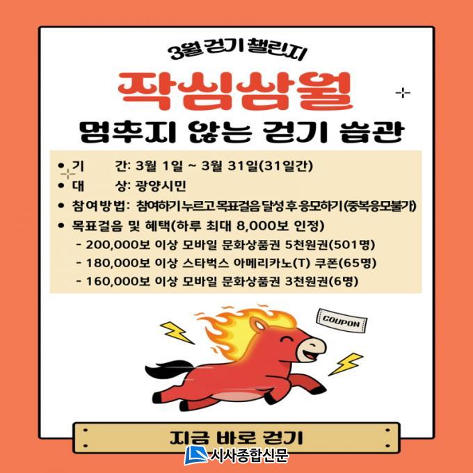 ÇÑÆí, ±¤¾ç½Ã´Â »ýȰ ¼Ó ½ÅüȰµ¿À» Ȱ¼ºÈÇÏ°í ½Ã¹Î °Ç°ÁõÁøÀ» µµ¸ðÇϱâ À§ÇØ ¸ð¹ÙÀÏ °È±â ¾Û ¡®¿öÅ©¿Â¡¯À» Ȱ¿ëÇÑ °È±â 縰Áö¸¦ ¸Å¿ù ¿î¿µÇϰí ÀÖÀ¸¸ç, ÇöÀç ±¤¾ç½Ã °ø½Ä Ä¿¹Â´ÏƼ¿¡´Â ´©Àû 1¸¸ 221¿© ¸íÀÌ °¡ÀÔÇØ Ȱ¹ßÈ÷ Âü¿©Çϰí ÀÖ´Ù.