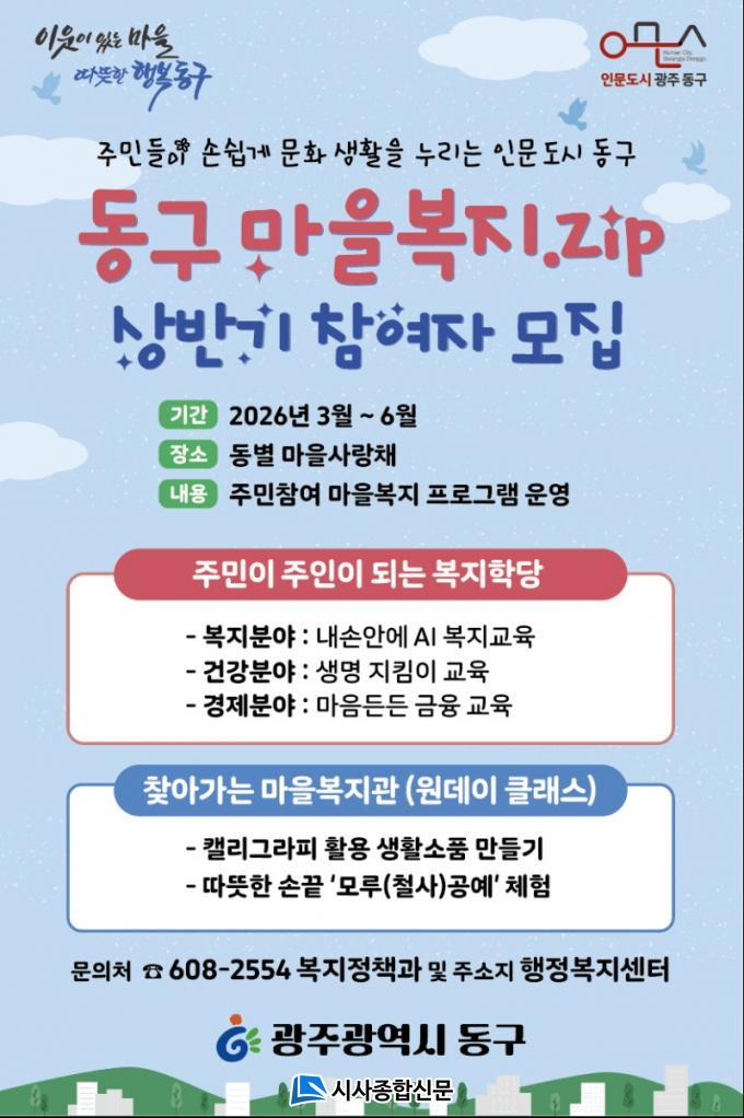 ¡®¸¶À»º¹Áö.ZIP¡¯Àº ÁÖ¹ÎÀÌ »ýȰ ¼Ó¿¡¼ º¹Áö¸¦ ÀÚ¿¬½º·´°Ô ¹è¿ì°í ÀÌ¿ô°ú ¼ÒÅëÇϸç Á¤ÀÌ ³ÑÄ¡´Â ¸¶À»°øµ¿Ã¼¸¦ ¸¸µé±â À§ÇÑ µ¿±¸ ´ëÇ¥ ¸¶À»º¹Áö»ç¾÷ÀÌ´Ù. ¿ÃÇØ´Â ¡ãÀÌ¿ô °£ ¾ÈºÎ Àλç Ä·ÆäÀÎ ¡ã¿ì¸®µ¿³× º¹Áö È«¹ÝÀå ¡ãÁÖ¹ÎÀÌ ÁÖÀÎÀÌ µÇ´Â º¹ÁöÇÐ´ç ¡ãã¾Æ°¡´Â ¸¶À»º¹Áö°ü µî ´Ù¾çÇÑ ÇÁ·Î±×·¥À» ¿î¿µÇÑ´Ù.