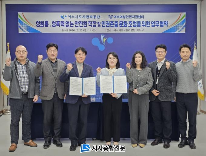 [½Ã»çÁ¾ÇսŹ® = ¿À½ÂÅà ±âÀÚ] ¿©¼ö½Ãµµ½Ã°ü¸®°ø´Ü(ÀÌ»çÀå ¼Ûº´±¸)Àº ¼ºÆòµîÇÑ Á¶Á÷¹®È­ Á¤Âø°ú ÀαÇģȭÀû °ø°ø½Ã¼³ Á¶¼ºÀ» À§ÇØ ¿©¼ö¿©¼ºÀαÇÁö¿ø¼¾ÅÍ(¼¾ÅÍÀå À±Àº¹Ì), ¿©¼ö½Ã ¿©¼ºÄ£È­µµ½Ã ½Ã¹ÎÂü¿©´Ü À§ÇÏ´ÙWE_ÇÏ´Ù(´ÜÀå ÀÌÇö¿µ)¿Í ÀÕ´Þ¾Æ ¾÷¹«Çù¾àÀ» ü°áÇß´Ù°í 27ÀÏ ¹àÇû´Ù.