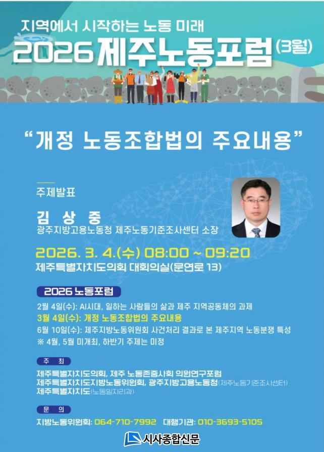| Á¦ÁÖÆ¯º°ÀÚÄ¡µµ, 2026³â Á¦Áֳ뵿Æ÷·³ °³ÃÖ ¡®°³Á¤ ³ëµ¿Á¶ÇÕ¹ý ¼³¸íȸ¡¯°³ÃÖ, ½ÃÇà ¾ÕµÎ°í »ç¿ëÀÚ ¹üÀ§ È®´ë ÇÙ½É ³»¿ë °øÀ¯ |