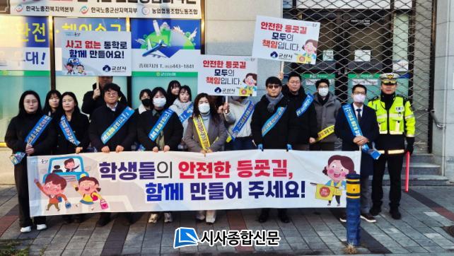 À̳¯ Çà»ç¿¡´Â ±º»ê°æÂû¼¿Í ±º»ê±³À°Áö¿øÃ», ±º»êÁß¾ÓÃʵîÇб³ °ü°èÀÚ µî 60¿© ¸íÀÌ Âü¿©ÇØ ¡°ÇлýµéÀÇ ¾ÈÀüÇÑ µî±·±æ ÇÔ²² ¸¸µé¾î ÁÖ¼¼¿ä!¡±¶ó´Â ¹®±¸°¡ ´ã±ä Çö¼ö¸·°ú È«º¸ Àü´ÜÀ» Ȱ¿ëÇØ »óÀΰú ½Ã¹ÎµéÀÇ ÀÚ¹ßÀûÀÎ ÇùÁ¶¸¦ ¿äûÇß´Ù.