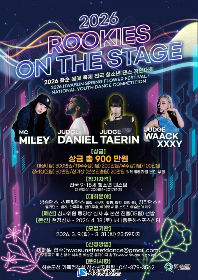 °æ¿¬ Á¾¸ñÀº ¹æ¼Û´í½º, ½ºÆ®¸®Æ®´í½º, âÀÛ´í½º Áß ÀÚÀ¯·Ó°Ô ¼±ÅÃÇÒ ¼ö ÀÖ´Ù. Á¢¼ö ±â°£Àº 2026³â 3¿ù 31ÀϱîÁöÀ̸ç, Âü°¡ ½Åû¼¿Í ´í½º µ¿¿µ»óÀ» À̸ÞÀÏ(hwasunstreetdance@gmail.com)·Î Á¦ÃâÇÏ¸é µÈ´Ù. ±âŸ ÀÚ¼¼ÇÑ »çÇ×Àº ȼø±º ȨÆäÀÌÁö °í½Ã °ø°í¶õÀ» È®ÀÎÇÏ¸é µÈ´Ù.