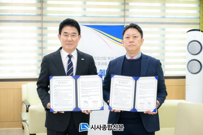 ¸Þµð¾Ó½º ¹Ú¼öÂù ´ëÇ¥ÀÌ»ç´Â ¡°À̹ø Çù¾àÀº Áö¿ª»çȸ¿Í ÇÔ²² »ó»ý Çù·ÂÀÇ Àǹ̸¦ ´ã°í ÀÖ´Ù¡±¸ç ¡°¾ÕÀ¸·Îµµ ¡®¿Ã°ðÀº¡¯ ±â¾÷ À̳äÀ» ¹ÙÅÁÀ¸·Î ¼øÃµ½Ã¿Í Çù·ÂÇØ Áö¿ª °æÁ¦ Ȱ¼ºÈ¿Í Áö¼Ó °¡´ÉÇÑ »ê¾÷ ¹ßÀü¿¡ ±â¿©ÇØ ³ª°¡°Ú´Ù¡±°í ¸»Çß´Ù.